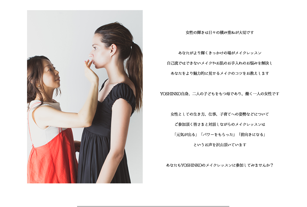 YOSHINKOとのマンツーマンのメイクレッスンです。